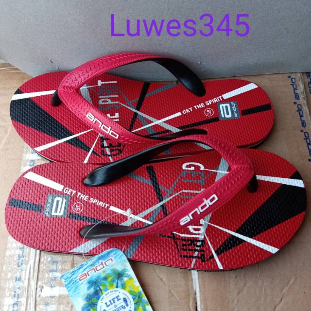 Rp41 900 19 sandal flip flop remaja original ando sendal flat remaja ando hawai 32 37. Jual ando thunder abu hitam sandal jepit pria original 38 dengan harga rp52 425 dari toko online olviobandung kab. Khusus dirilis untuk pria sandal ando edisi satu ini menggunakan material yang memiliki elastisitas tinggi dengan warna gelap dan maskulin.