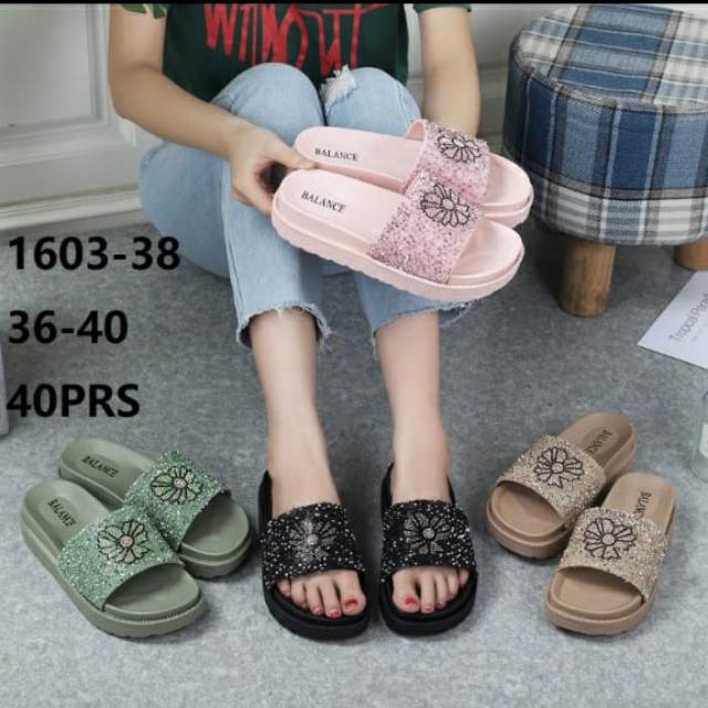 Sandal Balance Bahan Karet Jelly Motif Bunga Gliter Blc 1603 38 Shopee Indonesia