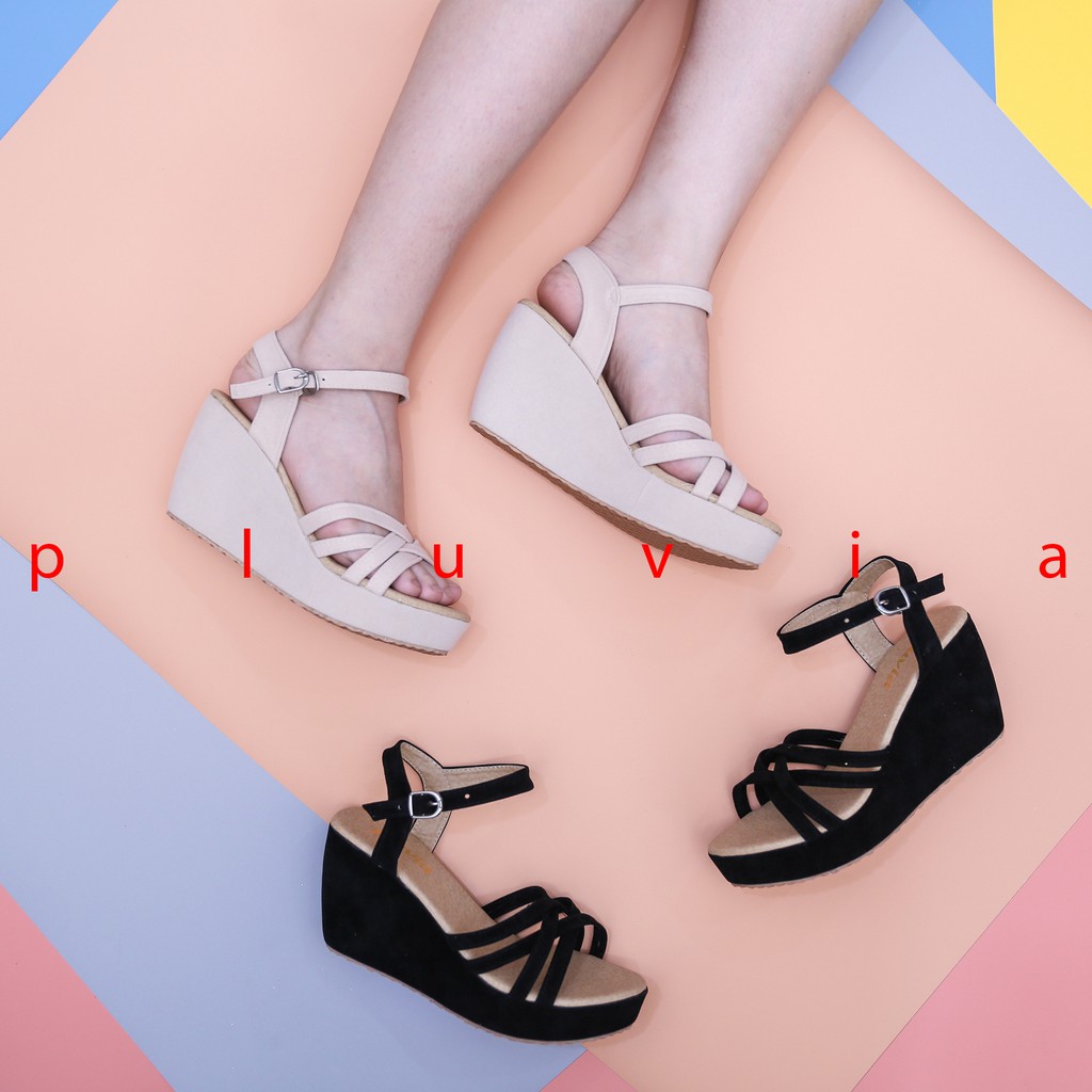 Pluvia Rene Sandal Wedges Tali Wanita Shopee Indonesia