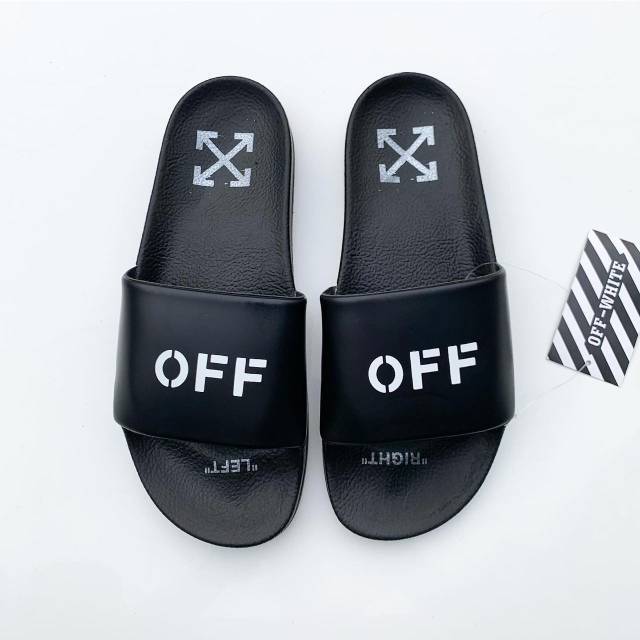 Off White Sandals Slop Pria Wanita Hitam Left Right Kasual Kekinian Santai Hype Beast Shopee Indonesia