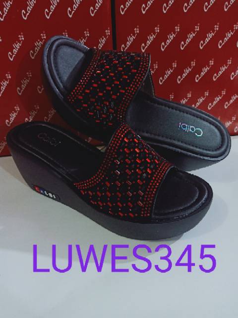 Sandal Calbi 2020 Klx 1710 Warna Merah Krem Dan Hitam 36 Sampai 40 Shopee Indonesia