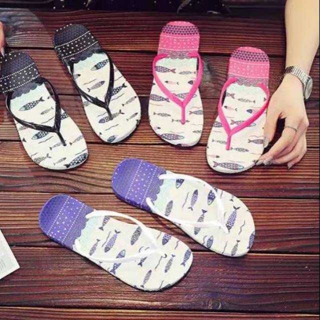 Sandal Jepit Wanita Motif Ikan Shopee Indonesia